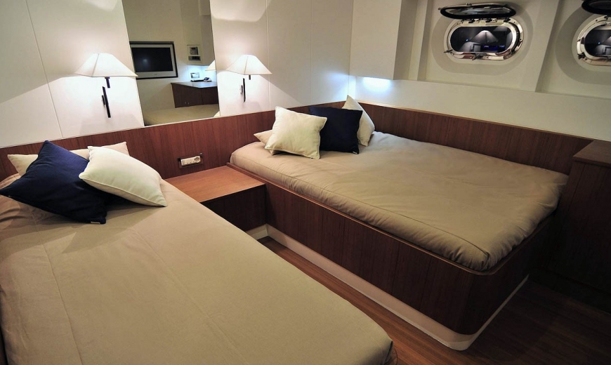 Gulet UBI BENE has 5 cabins (1 Master + 2 Double + 2 Twin) for 10 persons. All cabins have air conditioning. All cabins have private toilets and showers. There are separate crew quarters.