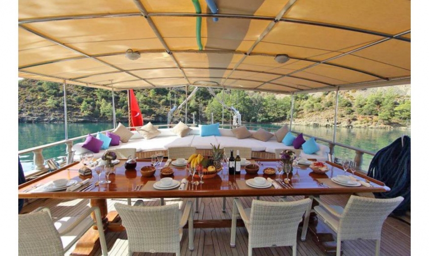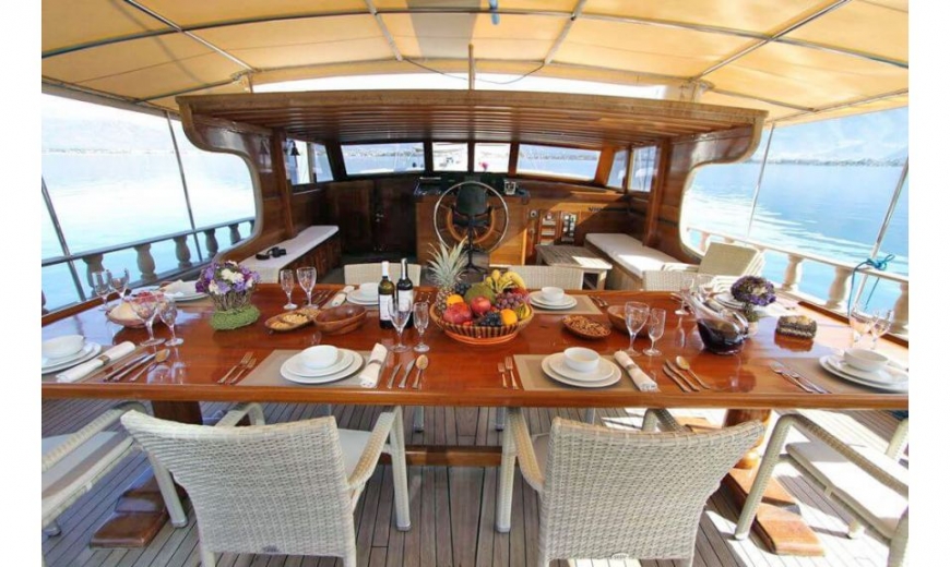 El barco PRENSES SELIN tiene GPS, VHF, etc. todos los equipos de navegación necesarios y todos los equipos de seguridad necesarios. Cocina totalmente equipada, refrigerador, congelador, máquina de hielo, generador, agua caliente. TV y reproductor de DVD, sistema de música. Colchones y toldos solares tanto en la parte delantera como en la cubierta de popa. Escalera de mar con plataforma. Bote pequeño con motor.