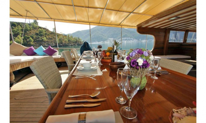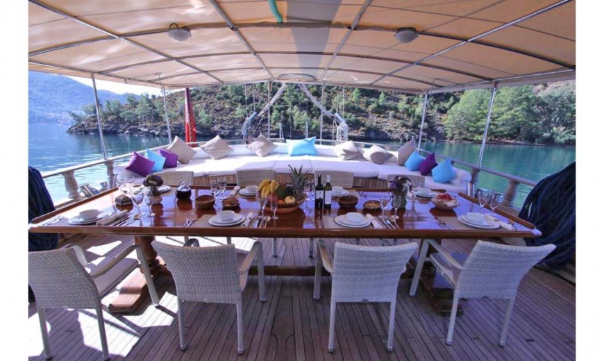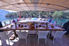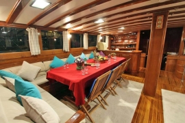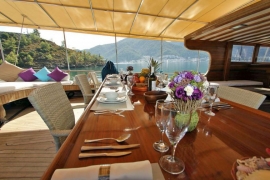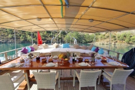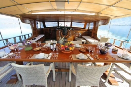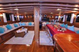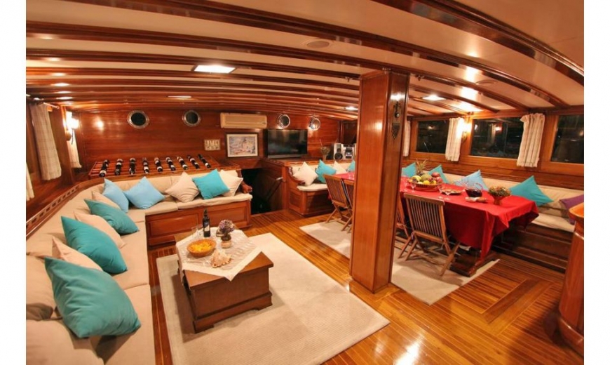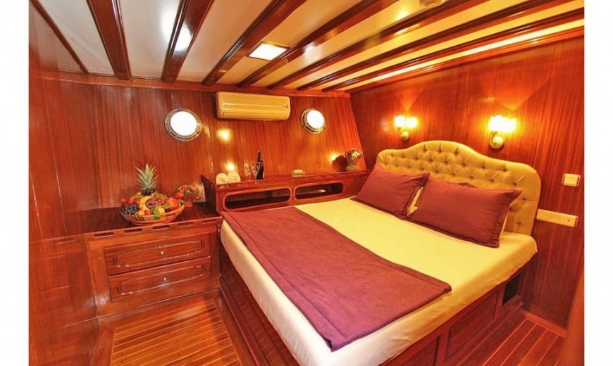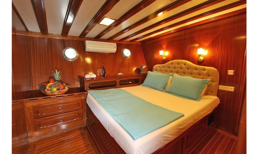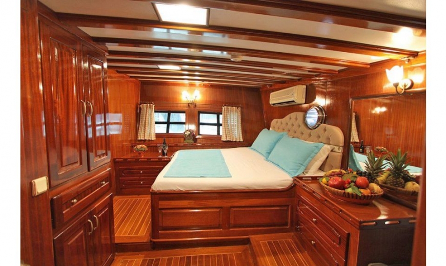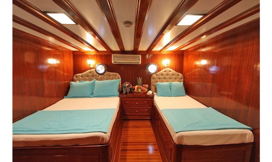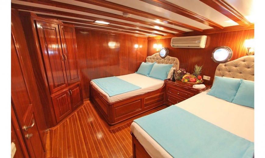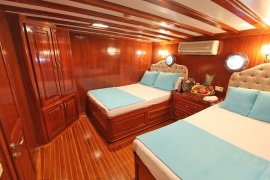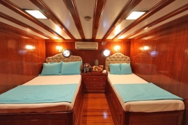 La goleta PRENSES SELIN tiene 8 cabinas (6 Double + 2 Triple) para 18 personas. Todas las cabañas tienen aire acondicionado. Todas las cabañas tienen baños privados y duchas. Hay cuartos de tripulación separados.