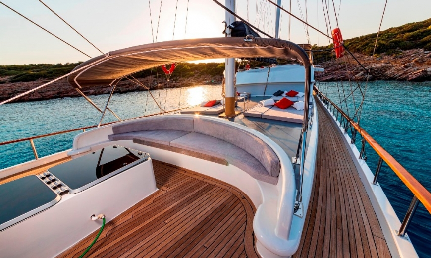 Gulet BODRUM QUEEN is stunning with her handmade mahogany interior and elegant exterior that she’s captured awards for her beauty. At 27 meters in length, she offers an intimate, memorable cruise through the southwest Mediterranean coast of Turkey with lots of room to stretch out, accommodating 12 guests in 2 master + 4 double en-suite cabins, and lots of inviting indoor and outdoor spaces.