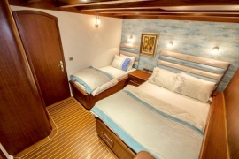 Gulet FREEDOM has 6 cabins (2 Master, 3 Triple, 1 Double) for 14 persons. All cabins have air conditioning. All cabins have private toilets and showers. There are separate crew quarters.