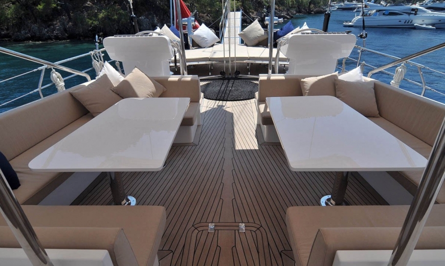 UBI BENE is a 44 meters long gulet yacht. The width is 8,80 meters. The boat has 2 x 540 HP Caterpillar engine.
