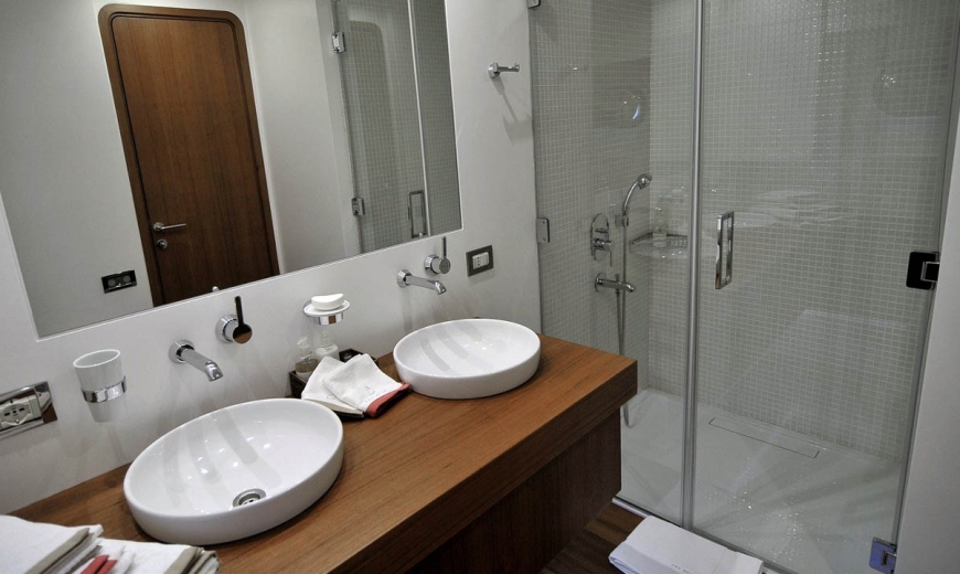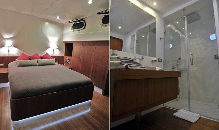 Gulet UBI BENE has 5 cabins (1 Master + 2 Double + 2 Twin) for 10 persons. All cabins have air conditioning. All cabins have private toilets and showers. There are separate crew quarters.