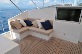 UBI BENE has GPS, VHF, etc. all necessary navigation equipment and all required safety equipment. Fully equipped kitchen, refrigerator, deep freeze, ice maker, generator, hot water. TV, Wi-Fi, Hi-Fi Sound System. Sun mattresses and awnings both on the front and stern decks. Sea ladder with platform. Tender with 75 HP outboard engine. Snorkelling Gear, Flippers, Sport Fishing, 2 Canoes, PaddleBoard, 2 Ringos, Water Ski, Wake Board.