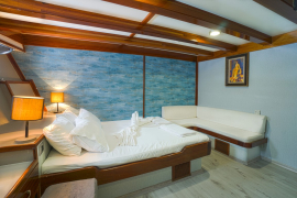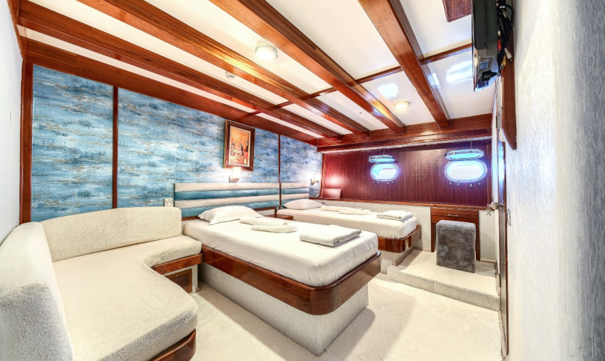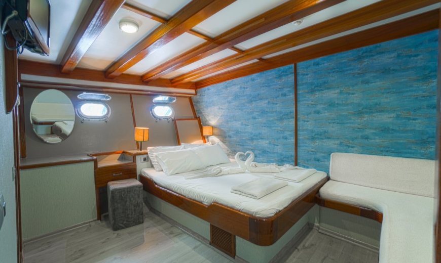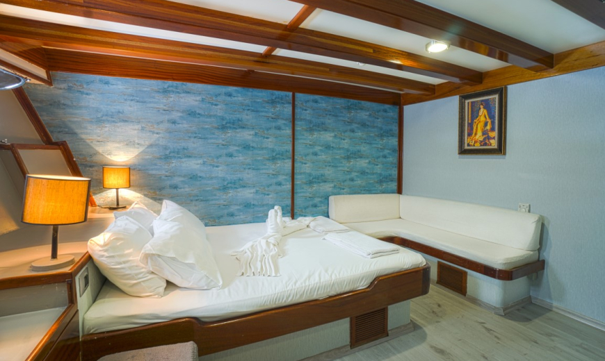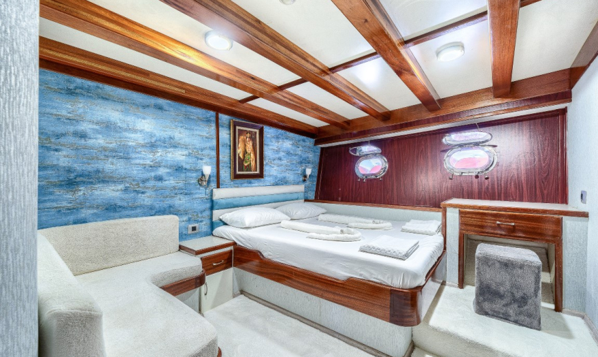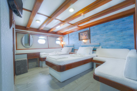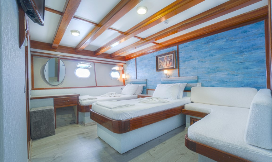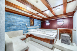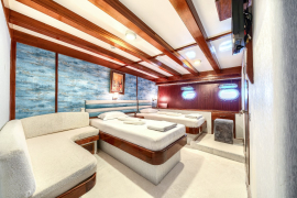 Gulet ELARA-1 has 12 cabins (6 Double + 6 Twin) for 24 people. All cabins have air conditioning. All cabins have private toilets and showers. There are separate crew quarters.