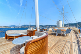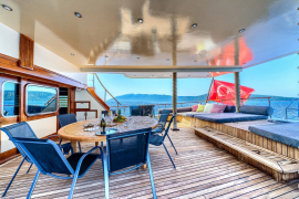ELARA-1 is a 40,0 meters long gulet yacht. The width is 10,0 meters. The boat has 2 x 750HP Volvo engine.